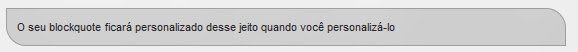 blockquote {border: 1px solid #c9c9c9; /* cor da borda */background-color: #efefef; /* cor de fundo */padding: 10px;font-size: 11px; /* tamanho da fonte */color: #333333; /* cor da fonte */text-align: justify;-moz-border-radius: 10px; /* Para Firefox */-webkit-border-radius: 10px; /*Para Safari e Chrome */border-radius: 10px; /* Para Opera 10.5+*/}